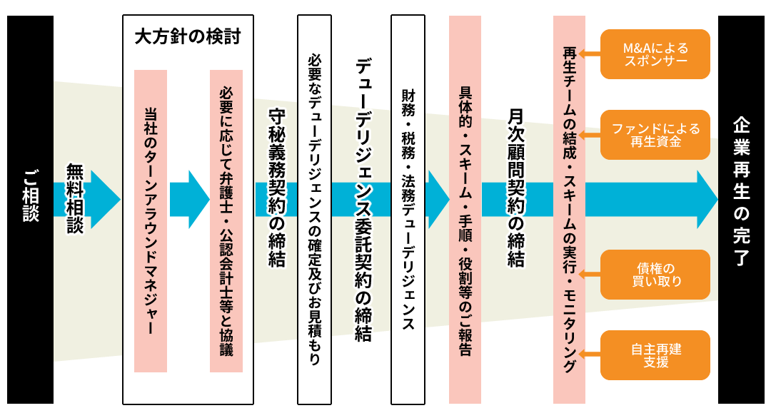 企業再生コンサルティングのご相談から再生完了までの流れ